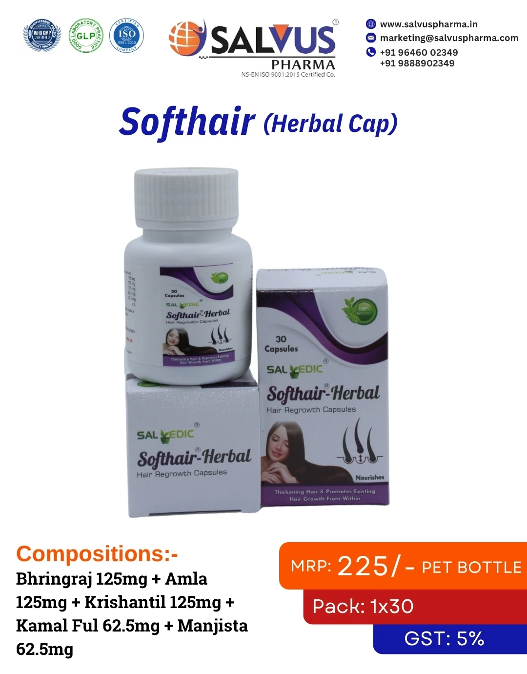 Composition Bhringraj 125mg + Amla 125mg + Krishantil 125mg + Kamal Ful 62.5mg + Manjista 62.5mg