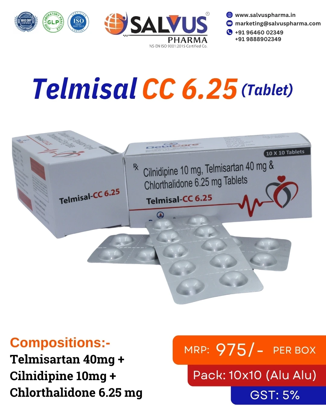 Composition Telmisartan 40mg + Cilnidipine 10mg + Chlorthalidone 6.25 mg