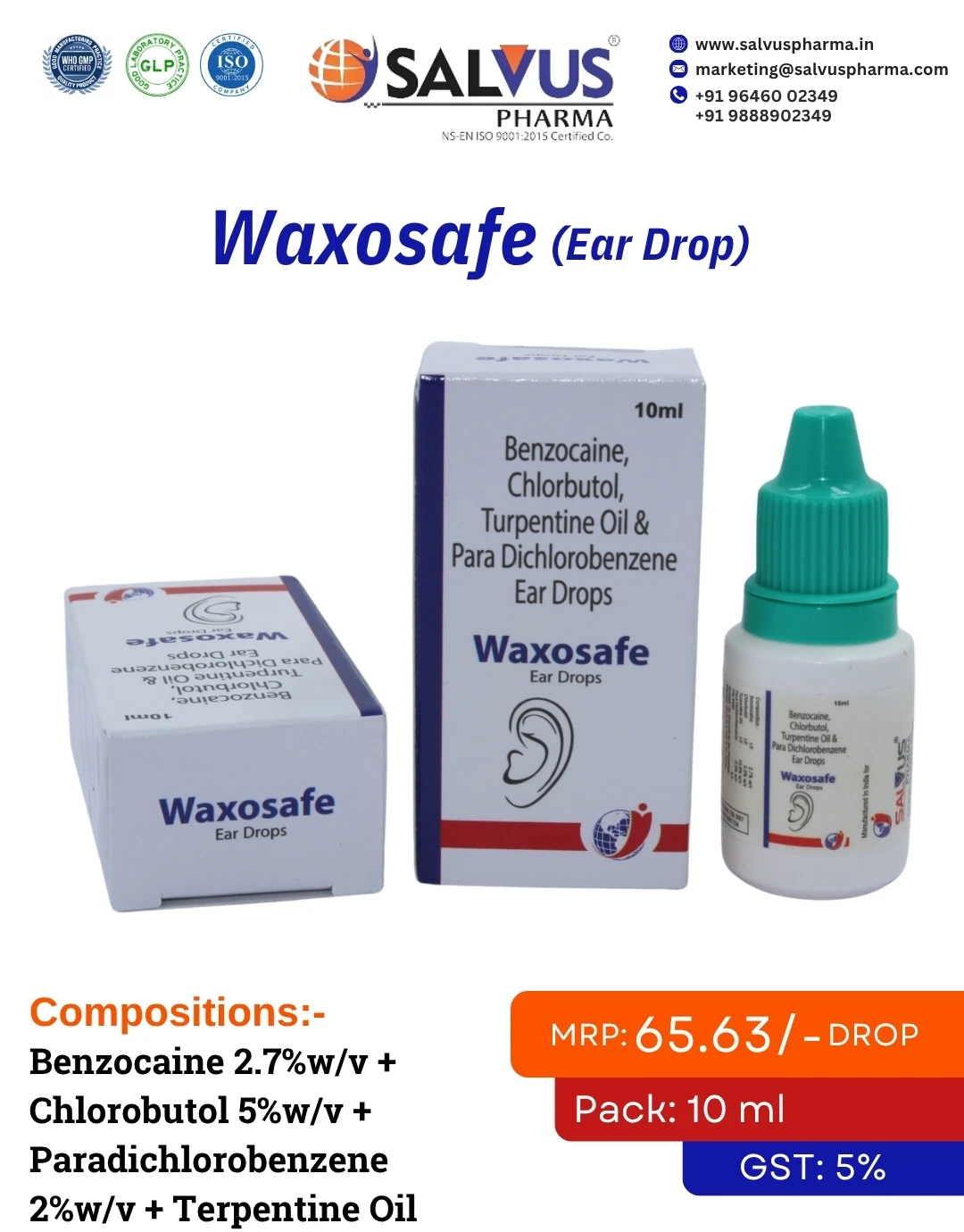 Composition Benzocaine 2.7%w/v + Chlorobutol 5%w/v + Paradichlorobenzene 2%w/v + Terpentine Oil 15% w/v